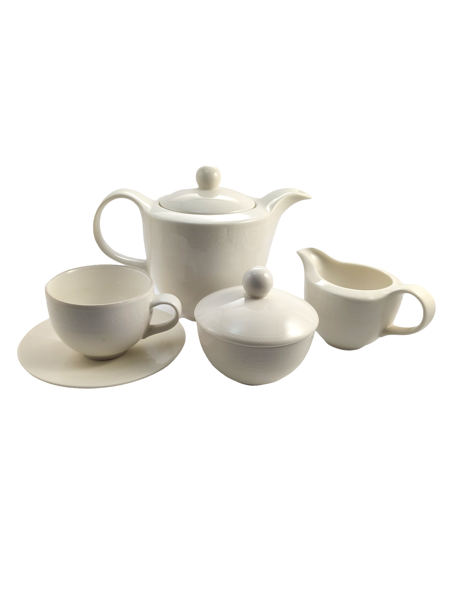 Serwis kawowy dla 12 osób 15 elementowy -kremowy z koronką- Waza